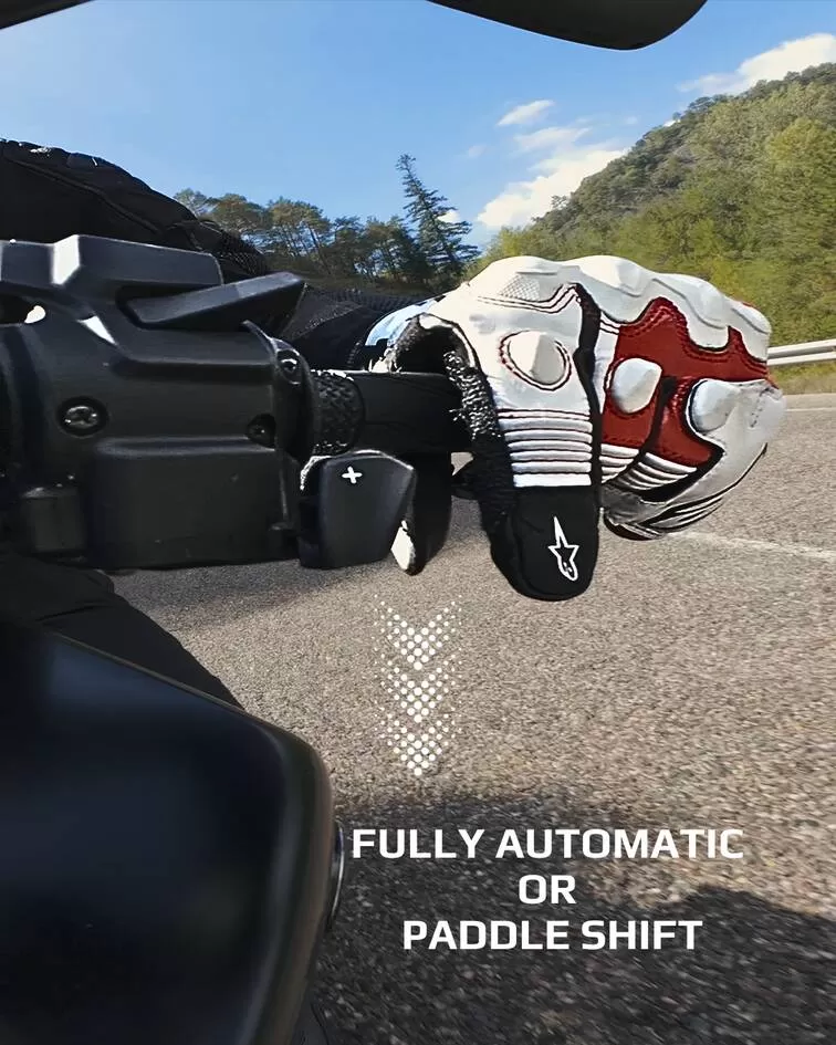 Y-AMT keeps the performance and feel of a real motorcycle, while giving you the choice of manual or automatic shifting.